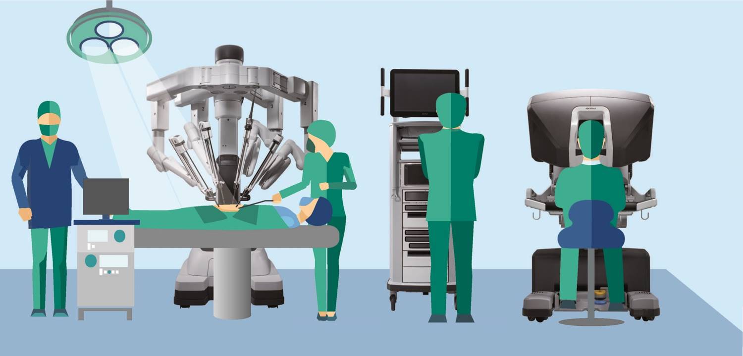 Während der OP sitzt der Chirurg an einer Bedienkonsole, die ihm dank hochauflösender 3D-Kameratechnik vielfach vergrößerte Einblicke in die Bauchhöhle des Patienten erlaubt. Selbst feinste Gewebestrukturen werden hierdurch erkennbar. Die zuvor über kleine Schnitte in den Bauchraum eingeführten Spezial-Instrumente lassen sich von der Konsole darüber hinaus besonders präzise steuern. Die Bewegungsmöglichkeiten sind der menschlichen Hand exakt nachempfunden und eine spezielle Technologie verfeinert sogar zusätzlich die Handgriffe. Damit ist das natürliche Zittern der Hand völlig aufgehoben.