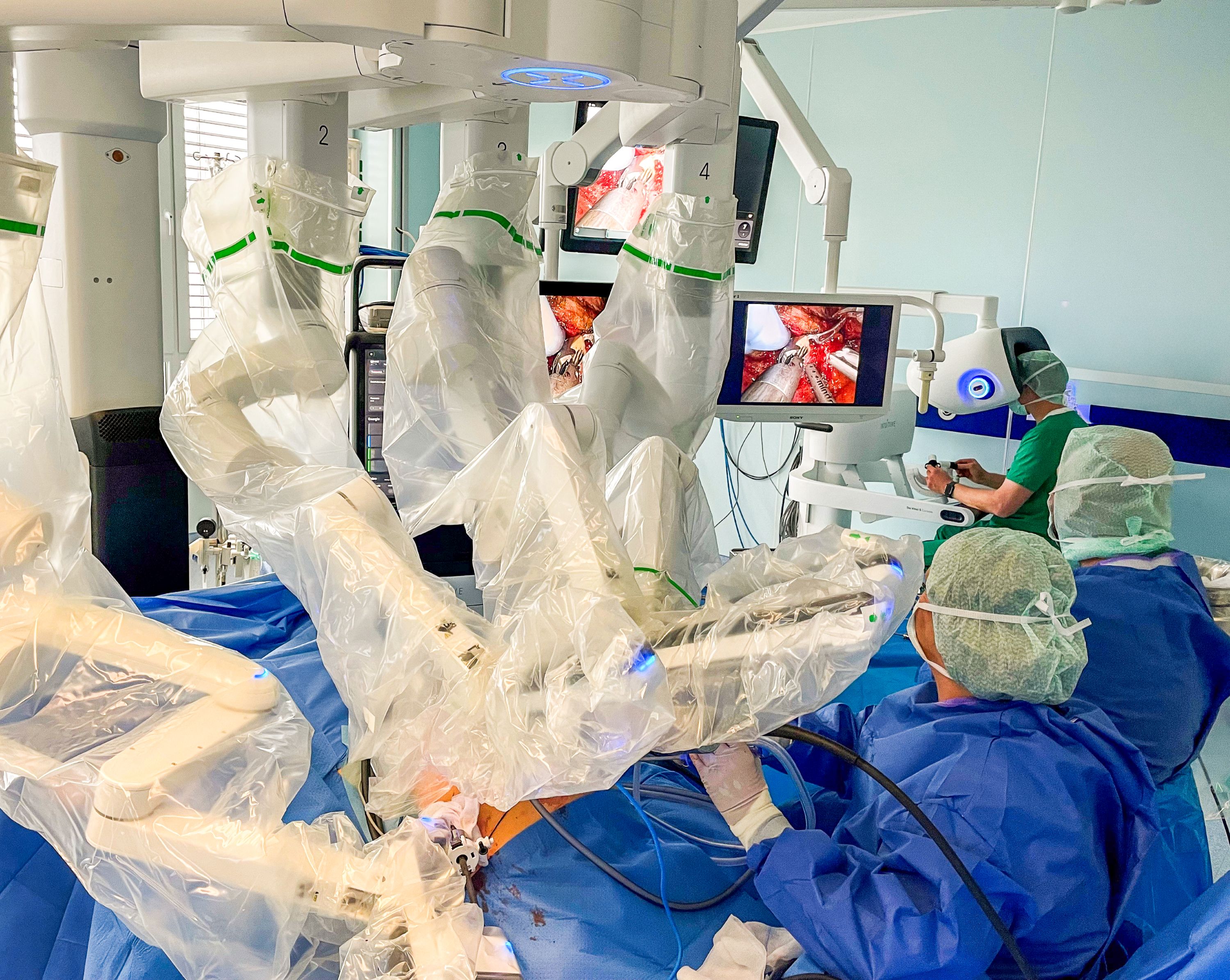 With over 25,000 robot-assisted surgical procedures, St. Antonius Hospital is a leader in this field. This is particularly true for prostatectomies (radical prostate removal), of which 1,800 are performed in Gronau every year. Since 2006, St. Antonius Hospital in Gronau has always used the latest da Vinci surgical systems – and since October 2025, it has been using the da Vinci 5, the latest generation. The hospital also has a unique training center where students and doctors can learn robot-assisted surgery on a da Vinci system as part of their training.